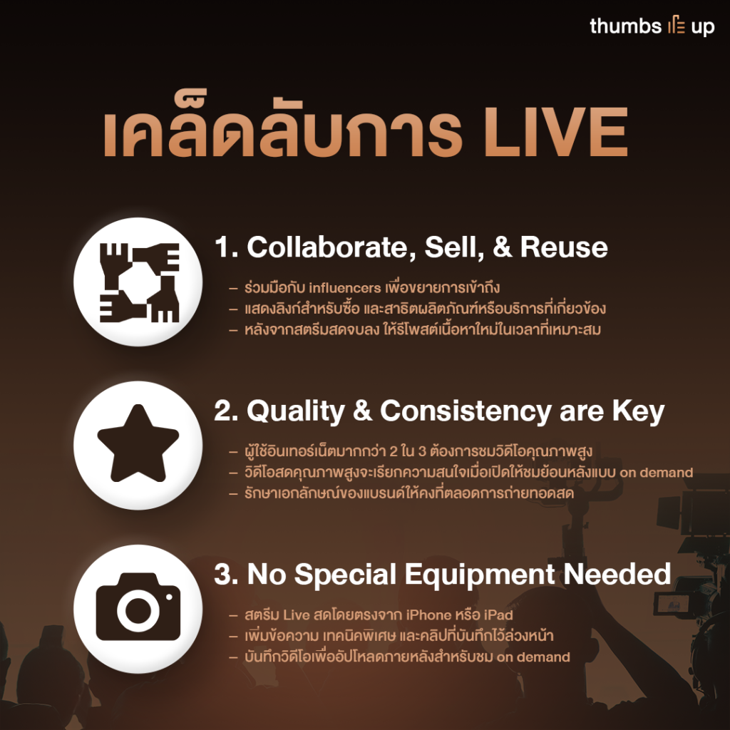 – รักษาเอกลักษณ์ของแบรนด์ให้คงที่ตลอดการถ่ายทอดสด