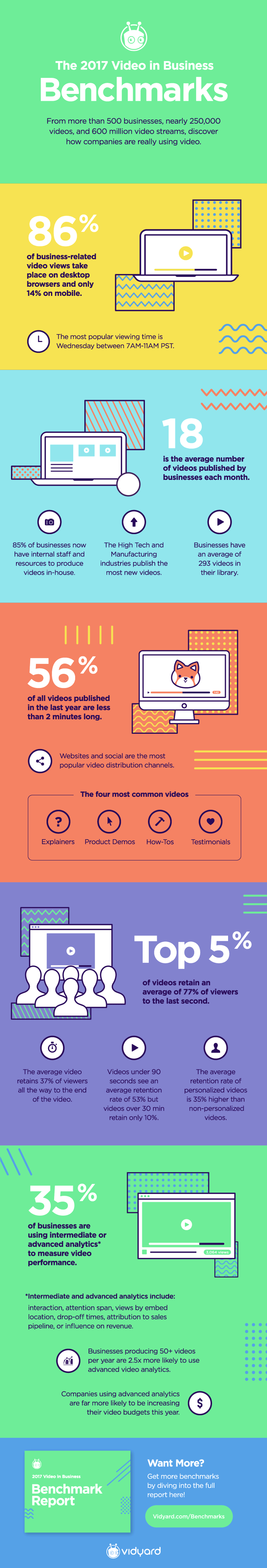 จากการประมวลแนวคิดของบริษัทกว่า 500 แห่ง ผ่านวิดีโอมากกว่า 250,000 ชิ้นในปี 2017 ที่นำไปสู่ยอดชมวิดีโอมากกว่า 600 ล้านครั้ง ต่อไปนี้คือสถิติน่าสนใจ ที่สะท้อนว่าวันนี้บริษัททั่วโลกทำ Video marketing ในแง่ใดบ้าง