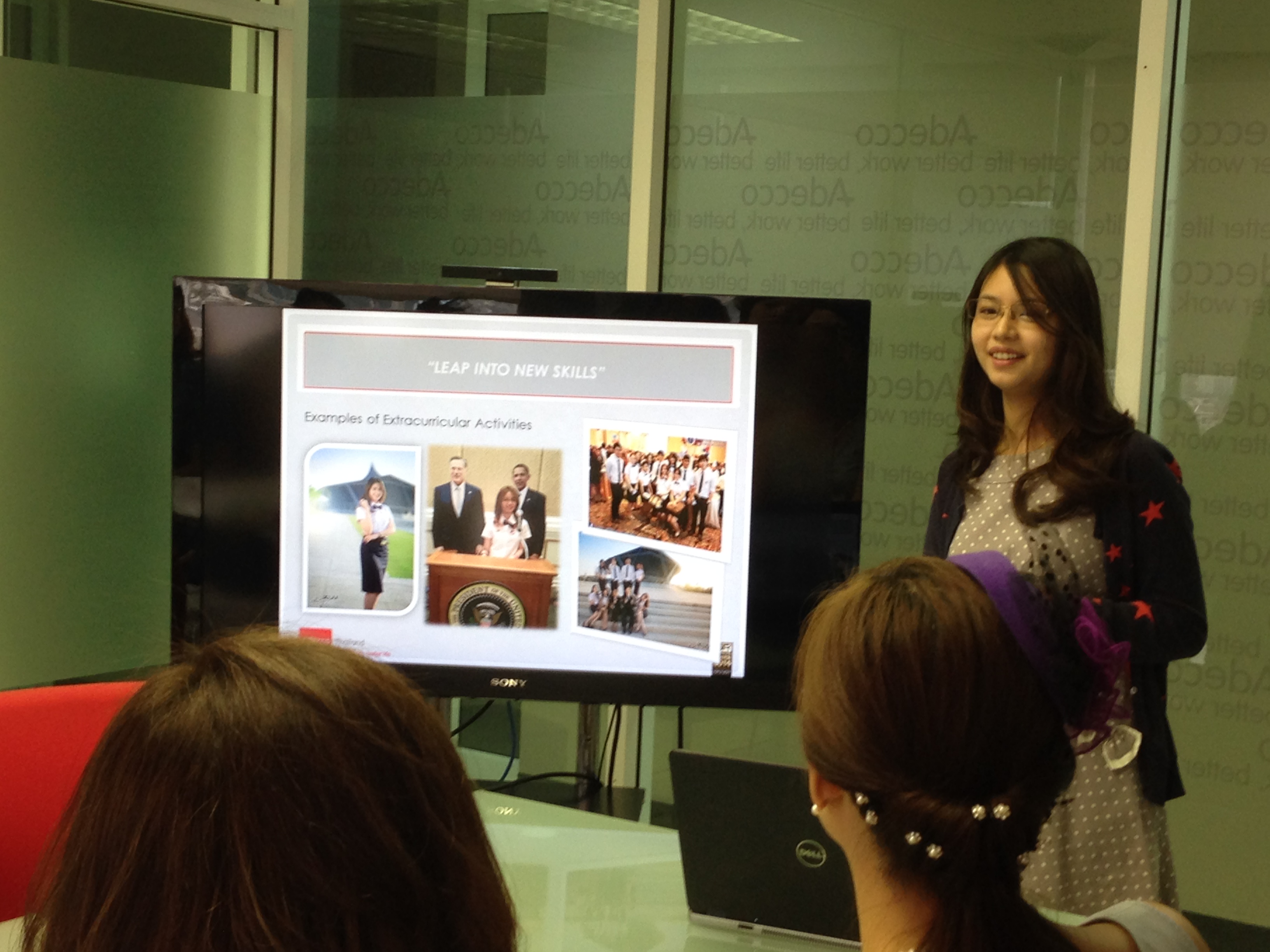 • การที่เข้ามาเป็น CEO หนึ่งเดือน ต้องคิดงานวางแผนกลยุทธ์ และพบปะกับAdecco หลายสาขา ด้วยความที่อายุเราเพียงแค่22ปียังเด็กอยู่มาก ต้องคุยกับพี่ๆที่อายุมากกว่าเราทั้งนั้น จึงต้องรู้จักวางตัวให้เหมาะสมค่ะ สำหรับแบมไม่คิดว่าเป็นปัญหา แถมยังสนุกด้วยเพราะได้เจอและแลกเปลี่ยนแนวคิดกับคนหลากหลายค่ะ