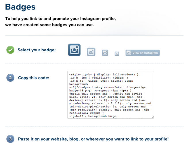 หลังจากที่เปิดตัวหน้าเว็บไซต์ Instagram Profile ตอนนี้ บริการเครือข่ายสังคมภาพถ่ายอย่าง Instagram เปิดตัว Badges ของตัวเองในฐานะเครื่องมือแสนง่ายที่จะช่วยให้ผู้ใช้สามารถโปรโมทและแชร์โปรไฟล์ Instagram ได้ในโลกออนไลน์