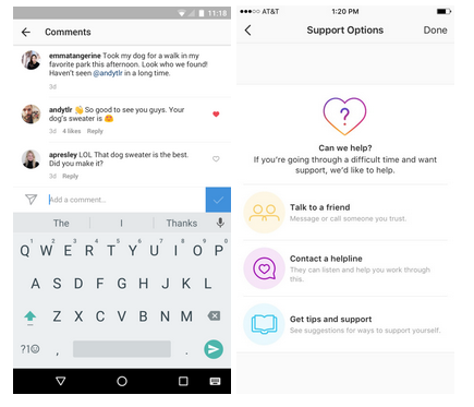 เรื่องสุดท้ายที่เพิ่มเข้ามา ถือว่าดีต่อใจ เพราะ Instagram น่าจะได้รับการร้องเรียนและมีคลังภาพที่เกี่ยวกับการทำร้ายตัวเองอยู่มากพอสมควร ทาง Instagram เลยทำคุณสมบัติให้คนที่เป็นเพื่อนของคนที่โพสต์ภาพสามารถแจ้งมายังทีมงาน Instagram โดยผู้แจ้งจะถูกระบุชื่อเป็น anonymous หรือไม่ระบุตัวตน เมื่อได้ข้อความแล้วทางทีมจะมีการติดต่อกลับไปยังคนที่โพสต์นั้นทันที