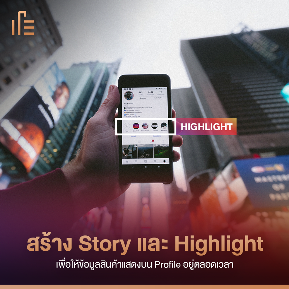 เป็นอีกหนึ่งวิธีที่ทำให้ลูกค้าสามารถเข้าถึงข้อมูลได้ง่ายบนหน้า Profile แม้ว่า Story จะหายไปภายใน 24 ชม. แต่ Instagram ก็มีฟีเจอร์ Highlight เพื่อให้ข้อมูลสินค้าแสดงบน Profile อยู่ตลอดเวลา ทำให้ลูกค้าใหม่ที่เพิ่งเข้ามาสามารถเข้าถึงข้อมูลสินค้าที่สำคัญได้