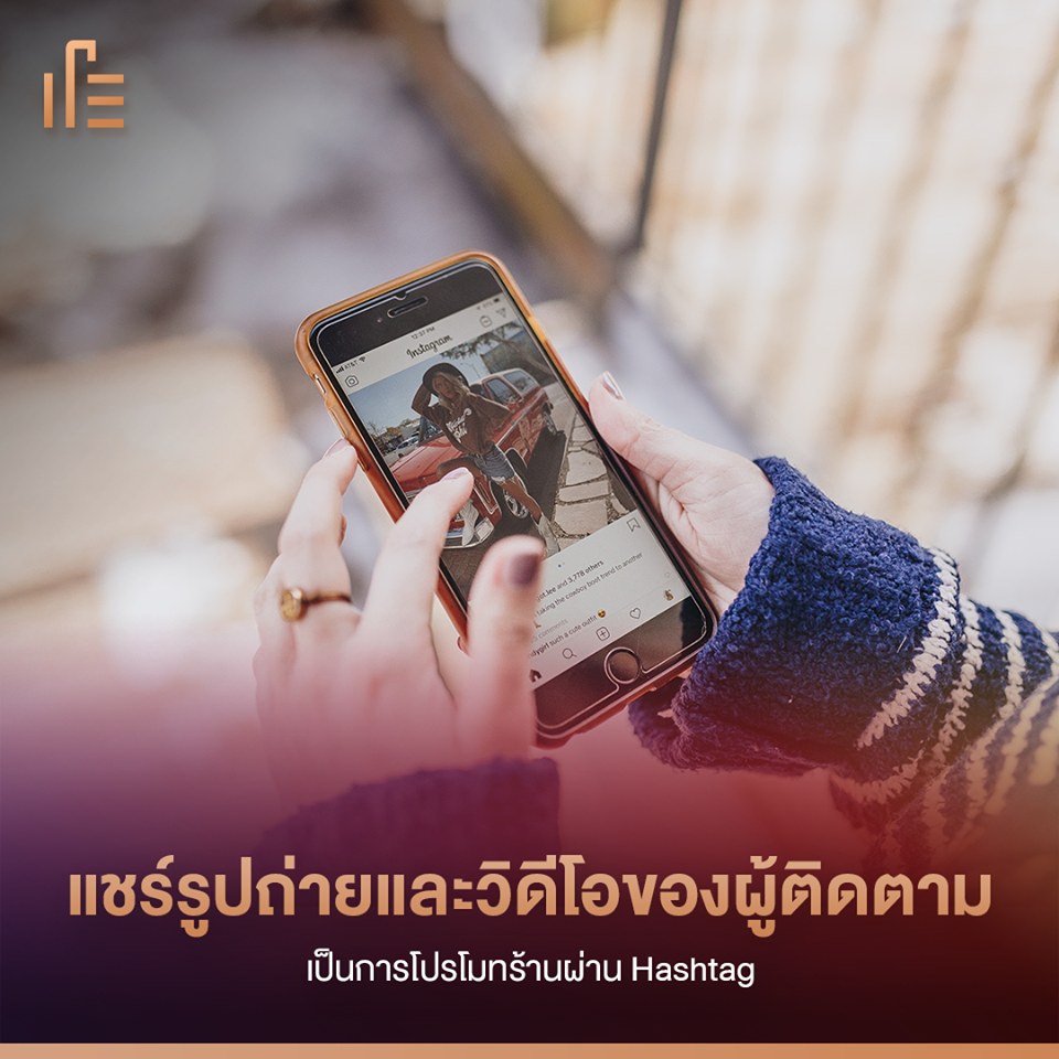 เป็นวิธีง่ายๆ ในการสร้างเนื้อหา เมื่อลูกค้าแท็กสินค้าในรูปภาพหรือวิดีโอ เราสามารถแชร์โพสต์มายังบัญชีของเราได้ และผู้ติดตามก็จะได้สนุก ได้ข้อมูล ความรู้ไปกับการได้อ่านเนื้อหา รีวิว จากผู้ใช้ด้วยกันเอง อีกทั้งยัง เป็นการโปรโมทร้านผ่าน Hashtag ด้วย
