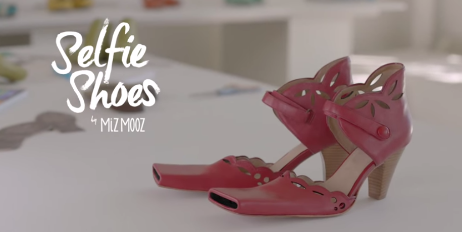 ว่ากันว่างานนี้ไม่เกี่ยวกับ April Fools’ Day เลยด้วย ตัวแทนจาก Miz Mooz ผู้พัฒนาผลิตภัณฑ์ออกมาเปิดตัวนวัตกรรมล่าสุดของรองเท้าที่มีชื่อว่า “รองเท้าเซลฟี่” หรือ Selfie shoes แบบจริงจัง โดยติดช่องเสียบสมาร์ทโฟนเอาไว้ที่ปลายของรองเท้าทั้งสองข้าง การนำมาใช้งานจริงอาจจะเป็นภาพที่เห็นแล้วชวนให้ #หัวเราะหนักมาก