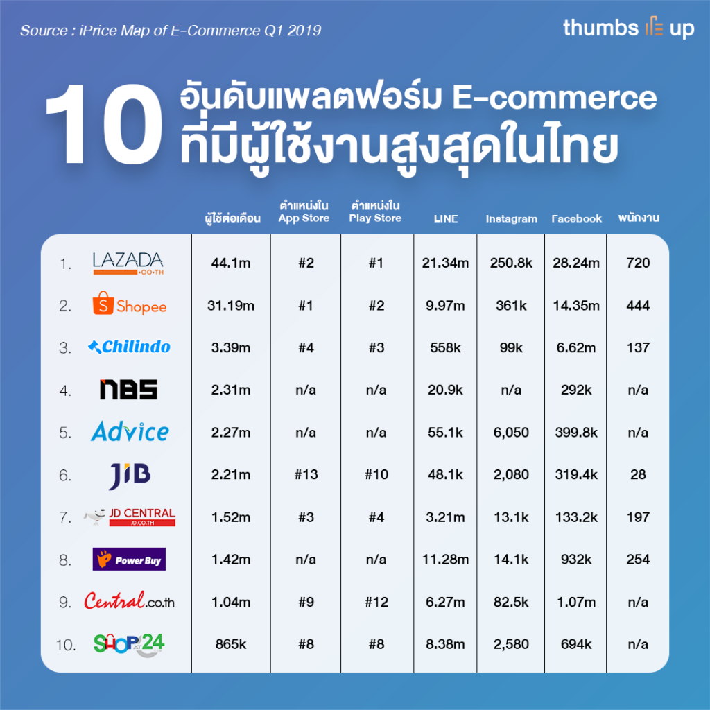 ภาพรวมแพลตฟอร์ม E-Commerce ไตรมาสแรกปี 2562 ในไทยเป็นอย่างไร