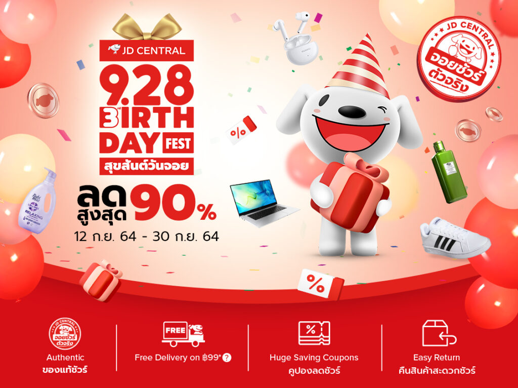 เจดีเซ็นทรัล ผู้นำด้านเทคโนโลยีอีคอมเมิร์ซและธุรกิจค้าปลีกในประเทศไทย ครบรอบ 3 ปี ทุ่มงบการตลาดเพิ่มขึ้น 2 เท่า จัดเต็มทั้งแจกทั้งแถม พร้อมเกมสนุกๆ แคมเปญเด็ด และโปรปังๆตลอดเดือนกันยายน ฉลองวันเกิดกับยอดการเติบโตกว่า 955% ครองใจคนไทยด้วยคะแนนแอปเรตติ้งบน Google Play ที่สูงสุดในกลุ่มอีคอมเมิร์ซแพลตฟอร์ม (ข้อมูล ณ วันที่ 19 กันยายน 2564) เผยอินไซต์จากแคมเปญเด็ดตลอดปี พร้อมบริการและฟีเจอร์ใหม่ๆ ในช่วงไตรมาสสุดท้ายของปี