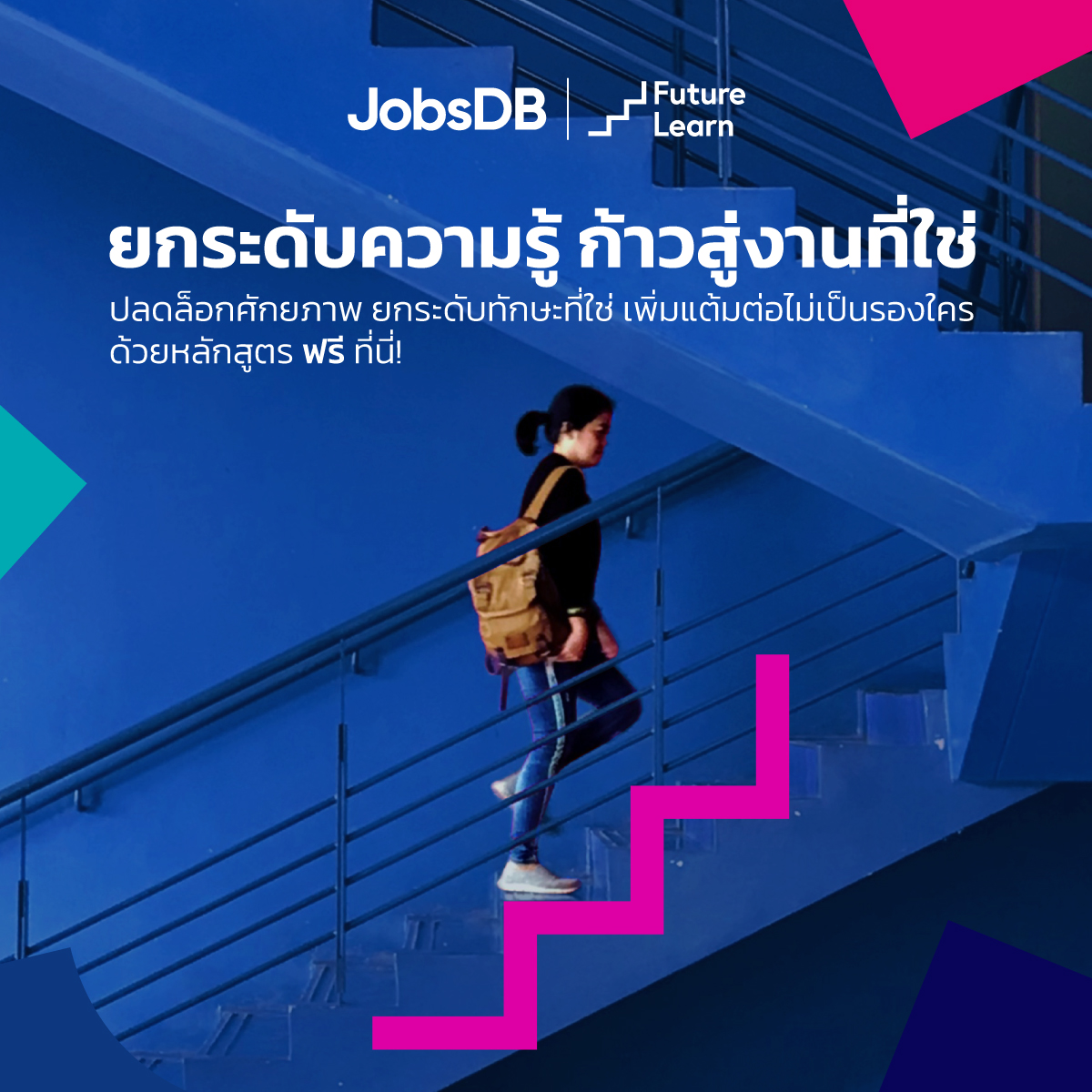 จ๊อบส์ ดีบี (JobsDB) แพลตฟอร์มหางานชั้นนำของเอเชีย เปิดตัวแคมเปญ “ยกระดับความรู้ ก้าวสู่งานที่ใช่” (#levelupyourcareer) กิจกรรมยกระดับทักษะคนหางานผ่านคอร์สเรียนออนไลน์ “อัพสกิล รีสกิล” จากความร่วมมือกับแพลตฟอร์มการเรียนออนไลน์ชื่อดังสัญชาติอออสเตรเลียอย่าง ฟิวเจอร์เลิร์น (FutureLearn) รวมกว่า 80 คอร์ส มูลค่าคอร์สละ 1,700 บาท จำนวน 15,000 สิทธิ์ รวมมูลค่ากว่า 25,000,000 บาท