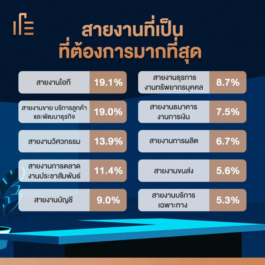สายงานที่เป็นที่ต้องการมากที่สุด ได้แก่
