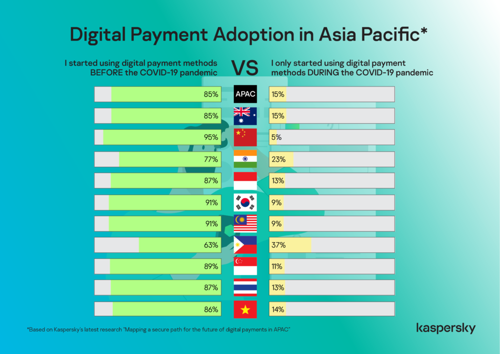 ความปลอดภัยและความสะดวกสบายได้กระตุ้นให้ผู้ใช้ในภูมิภาคเอเชียแปซิฟิกหันมาใช้เทคโนโลยีทางการเงินมากขึ้น ผู้ตอบแบบสอบถามมากกว่าครึ่งระบุว่าได้เริ่มใช้วิธีการชำระเงินดิจิทัลในช่วงโควิดระบาด เนื่องจากปลอดภัยและสะดวกกว่าการทำธุรกรรมแบบเห็นหน้ากัน