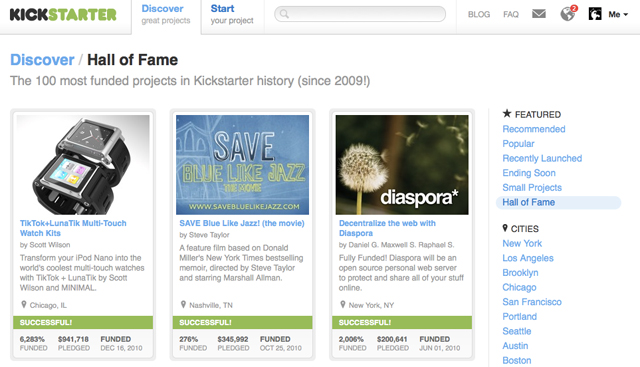 หนึ่งในเว็บไซต์ที่คนในแวดวงอินเทอร์เน็ตอเมริกาชื่นชอบมากที่สุดก็คือเว็บไซต์แนว Crowd Funding ชื่อดังอย่าง Kickstarter.com ที่คอยทำหน้าที่ระดมทุนให้กับศิลปินหรือคนที่อยากทำโครงการศิลปะต่างๆ แบบคนละเล็กคนละน้อย ล่าสุดทางทีมงานออกมาประกาศว่าเว็บไซต์กำลังจะมีอายุครบ 2 ปี ทางเว็บไซต์เลยออกมาเปิดเผยตัวเลขอย่างเป็นทางการว่างานศิลปะแบบไหนที่มีคนมาขอทุนทำงานเยอะที่สุด นั่นก็คือหมวด “ภาพยนตร์” และหมวด “ดนตรี”
