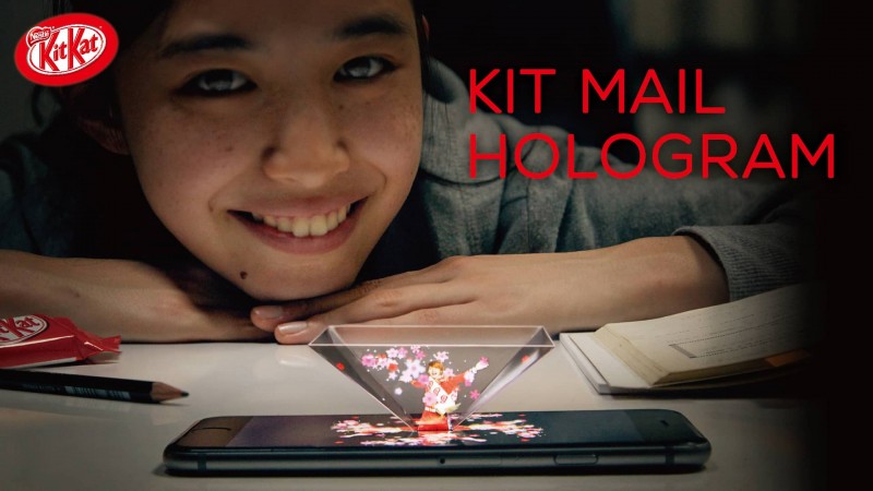 Kit Mail คือชื่อแคมเปญที่สร้างสรรค์โดย J Walter Thompson APAC โดยเอาพื้นฐานของการส่งต่อข้อความเพื่อให้กำลังใจบนห่อช็อกโกแลตที่เป็นเอกลักษณ์บน Kit Kat มารวมกับเทคโนโลยีที่น่าสนใจนั่นคือโฮโลแกรม โดยสิ่งที่ทาง Kit Kat ทำขึ้นมาก็คือการเอามาให้นอกจากขนมที่อยู่ในกล่องแล้วก็คือแผ่นพลาสติกที่จะต้องเอามาใช้งานคู่กับสมาร์ทโฟน