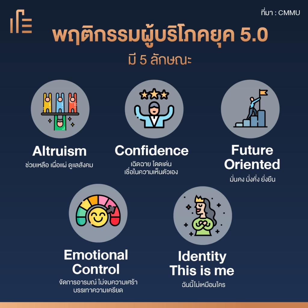 ลักษณะของผู้บริโภคยุค 5.0 มีความหลากหลายเชิงพฤติกรรม และได้แบ่งออกเป็นคาแรคเตอร์ที่แตกต่างกัน ดังนี้
