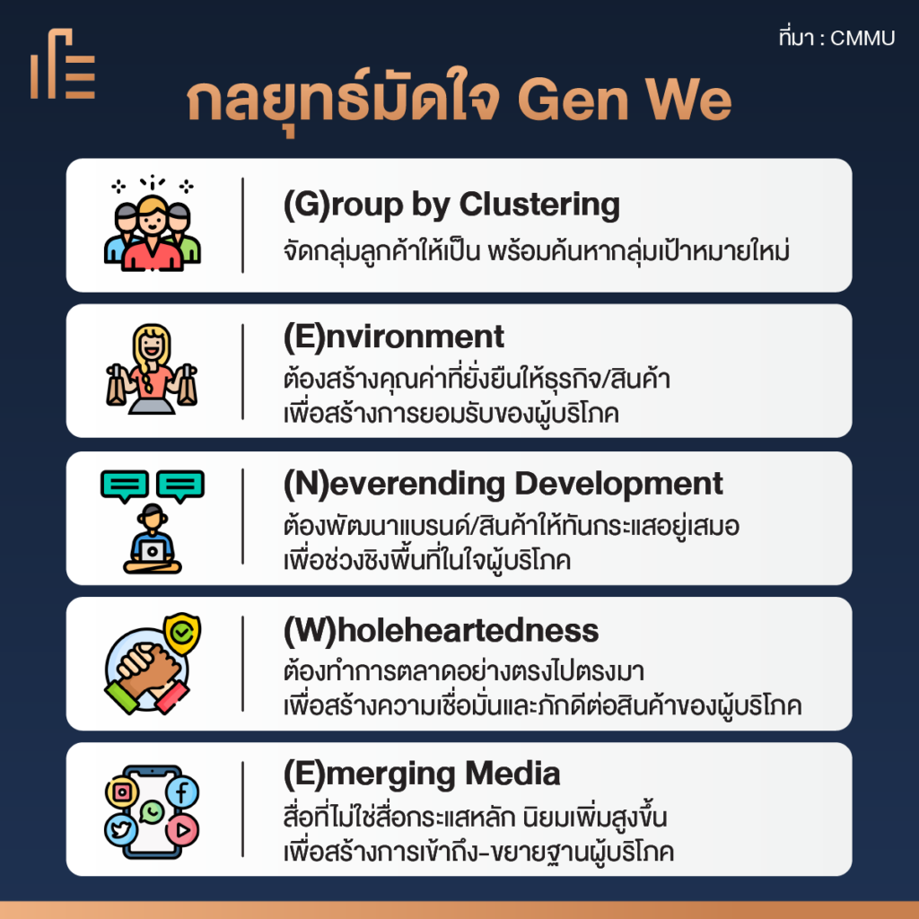 ทีมงาน thumbsup ได้นำข้อมูลจาก CMMU เกี่ยวกับชาว Gen We ที่เรียกว่าเป็นบุคลิกที่หลากหลายไม่สามารถจำแนกอายุ เพศ ความต้องการได้ชัดเจนแบบเดิม แต่เป็นการผสมผสานของคนหลายรูปแบบแต่มีพฤติกรรมในแนวทางเดียวกัน มาฝากค่ะ