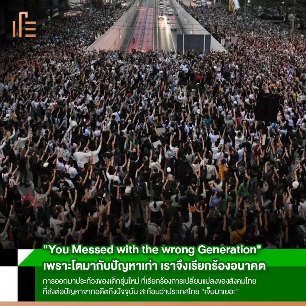 “You Messed with the wrong Generation” เพราะโตมากับปัญหาเก่า เราจึงเรียกร้องอนาคต ที่ตีแผ่แง่มุมของปัญหาการออกมาประท้วงของเด็กรุ่นใหม่ ที่กำลังเรียกร้องการเปลี่ยนแปลงของสังคมไทย ขณะเดียวกันก็นำเสนอปัญหาในอดีตว่าผู้ใหญ่เขาผ่านอะไรกันมาบ้าง และตอนนี้เรากำลังเจอปัญหาอะไร