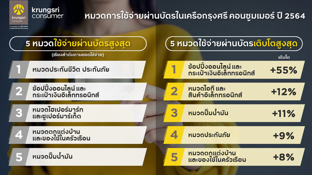 นางสาวณญาณี เผือกขำ ประธานกรรมการ กรุงศรี คอนซูมเมอร์ ผู้ให้บริการด้านบัตรเครดิตและสินเชื่อส่วนบุคคล อันประกอบไปด้วย บัตรเครดิตกรุงศรี, บัตรกรุงศรีเฟิร์สช้อยส์, บัตรเครดิตเซ็นทรัล เดอะวัน และบัตรเครดิตโลตัส กล่าวว่า ผลประกอบการของกรุงศรี คอนซูมเมอร์ ในปี 2564 ยังคงเติบโตเป็นที่น่าพอใจ แม้ต้องเผชิญกับสถานการณ์ โควิด-19 ที่ยืดเยื้อ ส่งผลให้เศรษฐกิจฟื้นตัวช้า