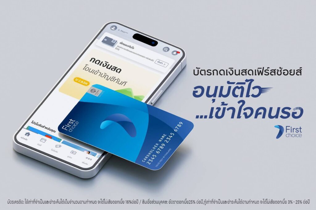 กรุงศรีเฟิร์สช้อยส์ รุกตลาดสินเชื่อส่วนบุคคล ออกแคมเปญสื่อสารใหม่ “บัตรกดเงินสดเฟิร์สช้อยส์ อนุมัติไว…เข้าใจคนรอ” ชูจุดเด่นของบัตรกดเงินสดเฟิร์สช้อยส์ ที่สมัครง่ายได้ทุกที่ อนุมัติไว เช็คผลอนุมัติได้เอง เมื่ออนุมัติแล้ว สามารถโอนเงินทันใจ ได้เงินทันที พร้อมจัดโปรโมชันสุดพิเศษ สมัครบัตรใหม่ รับสิทธิ์เบิกถอนเงินสด ไม่มีดอกเบี้ย 0% นานสูงสุดถึง 30 วัน เมื่อมียอดใช้จ่ายตามเงื่อนไข หวังขยายฐานลูกค้าใหม่ต่อเนื่อง ตั้งเป้าจำนวนบัญชีลูกค้าใหม่ เติบโต 14% ภายในสิ้นปี 2568