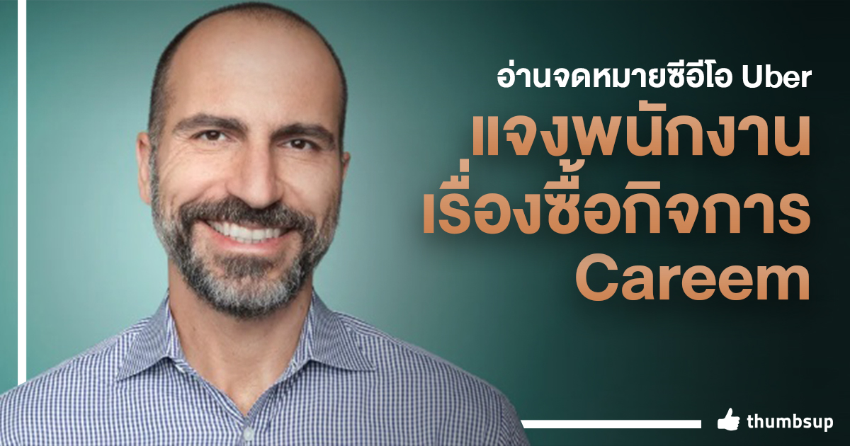 อัปเดทความคืบหน้าครั้งใหม่ของ Uber ล่าสุดยูนิคอร์นในวงการแอปเรียกรถร่วมเดินทางประกาศเทเงินมหาศาลซื้อกิจการ Careem แอปคู่แข่งที่ให้บริการในตะวันออกกลาง ความน่าสนใจของเรื่องนี้ไม่ได้อยู่ที่โอกาสในการกินรวบตลาดอาหรับเท่านั้น แต่ยังอยู่ที่จดหมายถึงพนักงาน ที่ CEO ดาวรุ่งอย่าง Uber เขียนไว้ได้ดีทีเดียว
