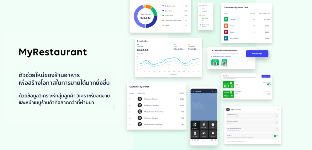 LINE แพลตฟอร์มแชทยอดนิยม ได้ตระหนักถึงความจำเป็นในการนำเอาเครื่องมือดิจิทัลมาใช้เพื่อสร้างประสิทธิภาพให้กับธุรกิจร้านอาหารขนาดเล็กให้อยู่รอดและเติบโตได้ในปัจจุบัน จึงได้ร่วมกับ LINE MAN Wongnai พัฒนาโซลูชั่นใหม่ “MyRestaurant” เครื่องมือสำหรับการจัดการร้านอาหารโดยเฉพาะ ที่จะช่วยผู้ประกอบการให้สามารถจัดการหน้าร้าน จัดการข้อมูลลูกค้าได้บนแพลตฟอร์มเดียว คือบน LINE Official Account อย่างมีประสิทธิภาพ เหมาะสำหรับร้านอาหารทุกขนาดตั้งแต่ขนาดเล็กแบบ Street Food ไปจนถึงขนาดใหญ่ ไม่ว่าระดับใดก็สามารถใช้เครื่องมือนี้ได้ฟรี ถือเป็นตัวช่วยขายดี ที่ทุกธุรกิจร้านอาหารต้องมีในยุคนี้