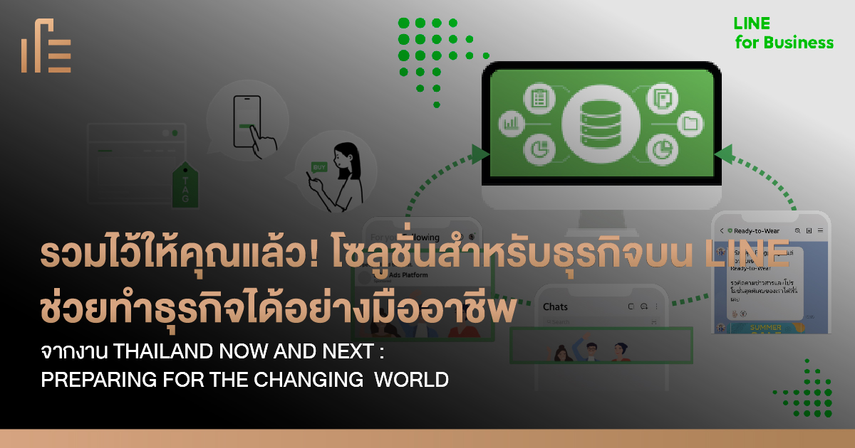 LINE แพลตฟอร์มดิจิทัลยอดนิยมที่ช่วยให้ธุรกิจสามารถนำโซลูชั่น เครื่องมือต่างๆ ไปใช้ให้เกิดประสิทธิภาพ ได้จัดงาน THAILAND NOW AND NEXT : PREPARING FOR THE CHANGING WORLD บอกเล่าเทรนด์ต่างๆ ที่เกิดขึ้นในโลกที่เปลี่ยนแปลงไป พร้อมแนะนำเครื่องมือทรงประสิทธิภาพที่จะช่วยให้ธุรกิจอยู่รอดและเติบโตในโลกยุคใหม่ได้