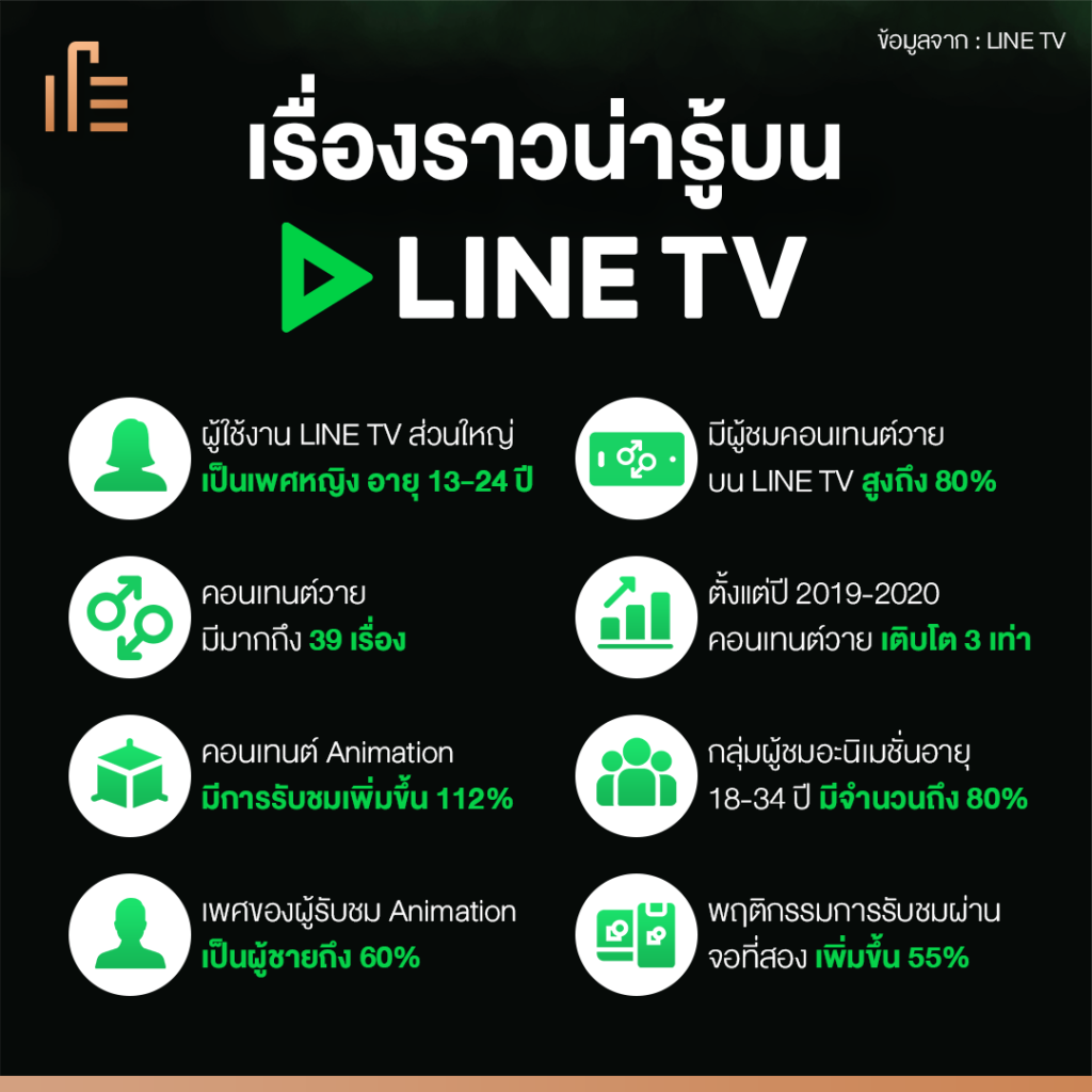เรียกว่าความพยายามในการปั้น LINE TV มาตลอดหลายปีนั้น ช่วยจุดกระแสโด่งดังได้เพราะซีรี่ย์วาย หรือคอนเทนต์ประเภทชายรักชาย สำหรับผู้ให้บริการแพลตฟอร์มวิดีโอออนไลน์ ที่กลายมาเป็นอีกหนึ่งช่องทางการรับชมคอนเทนต์ทุกประเภทในช่วงเวลาท่ีต้องการ และผู้รับชมคอนเทนต์นั้นก็เปิดใจยอมรับการมีโฆษณาคั่นในรูปแบบต่างๆ มากขึ้น