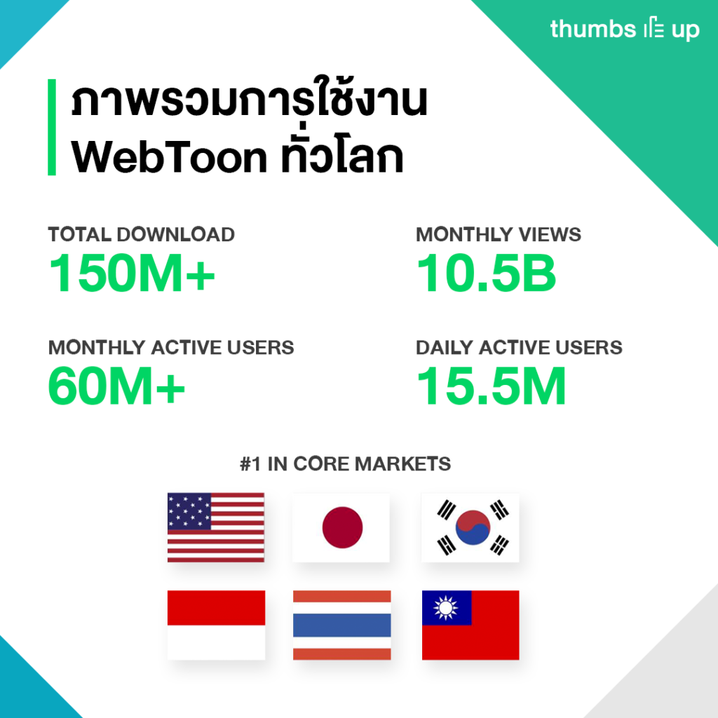 หลังจากนั้น LINE WEBTOON ได้เริ่มเปิดให้บริการไปทั่วโลกและประสบความสำเร็จในหลายๆประเทศ โดยมีผู้อ่านทั่วโลกมากกว่า 60,000,000 คนต่อเดือน ด้วยคอนเทนต์ให้เลือกอ่านมากกว่า 1,300,000 เรื่องทั่วโลก ขณะที่ในประเทศไทย มีผู้ใช้งานกว่า 16,800,000 คน