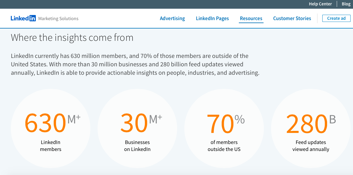 LinkedIn ระบุในบล็อกโพสต์ของบริษัทว่า วันนี้ชุมชน LinkedIn มีสมาชิกมากกว่า 645 ล้านคนและอีก 30 ล้านธุรกิจทั่วโลก ความนิยมนี้ทำให้ LinkedIn เป็นจุดหมายปลายทางหลักสำหรับการสร้างเครือข่ายมืออาชีพ และยังเป็นแหล่งข้อมูลเชิงลึกเกี่ยวกับผู้คน อุตสาหกรรม และการโฆษณาที่นักการตลาดหลายคนรู้จักดี