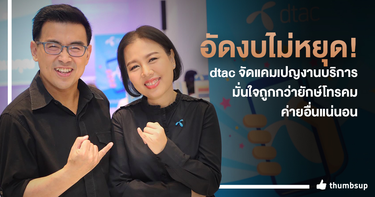ยังคงเดินหน้าชูกลยุทธ์ “จะไม่หยุดดูแลกันอย่างต่อเนื่อง” ล่าสุด dtac สานต่อแคมเปญด้านงานบริการ นอกจากจะมีการปรับสาขาให้เป็นดิจิทัลมากขึ้นแล้ว ก็ยังมีในเรื่องของโปรโมชั่นที่จะดันเต็มที่ โดยใช้งบการตลาดแค่แคมเปญเดียวก็ไม่น้อยกว่า 50 ล้านบาทแล้ว