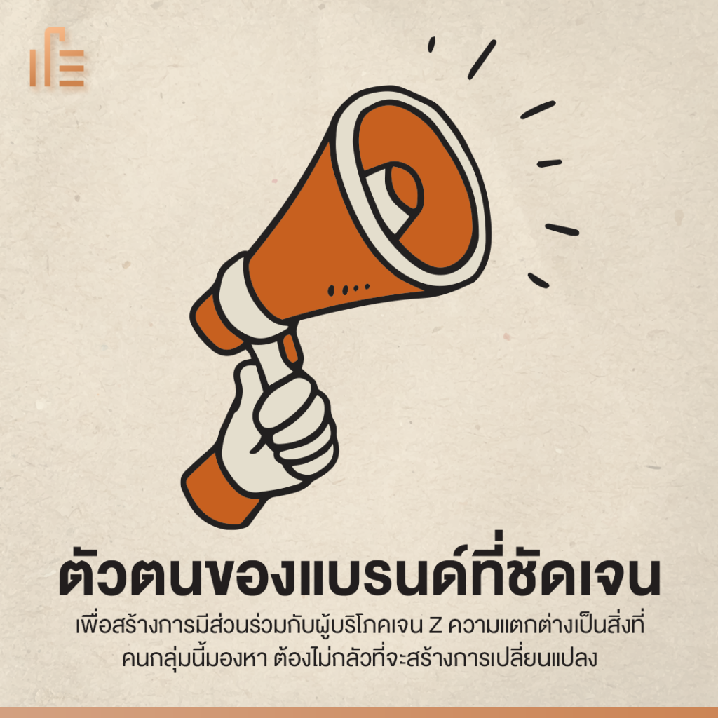 เพื่อสร้างการมีส่วนร่วมกับผู้บริโภคเจน Z แบรนด์ต้องมีตัวตนที่ชัดเจน ความแตกต่างเป็นสิ่งที่คนกลุ่มนี้มองหา ต้องไม่กลัวที่จะสร้างการเปลี่ยนแปลง