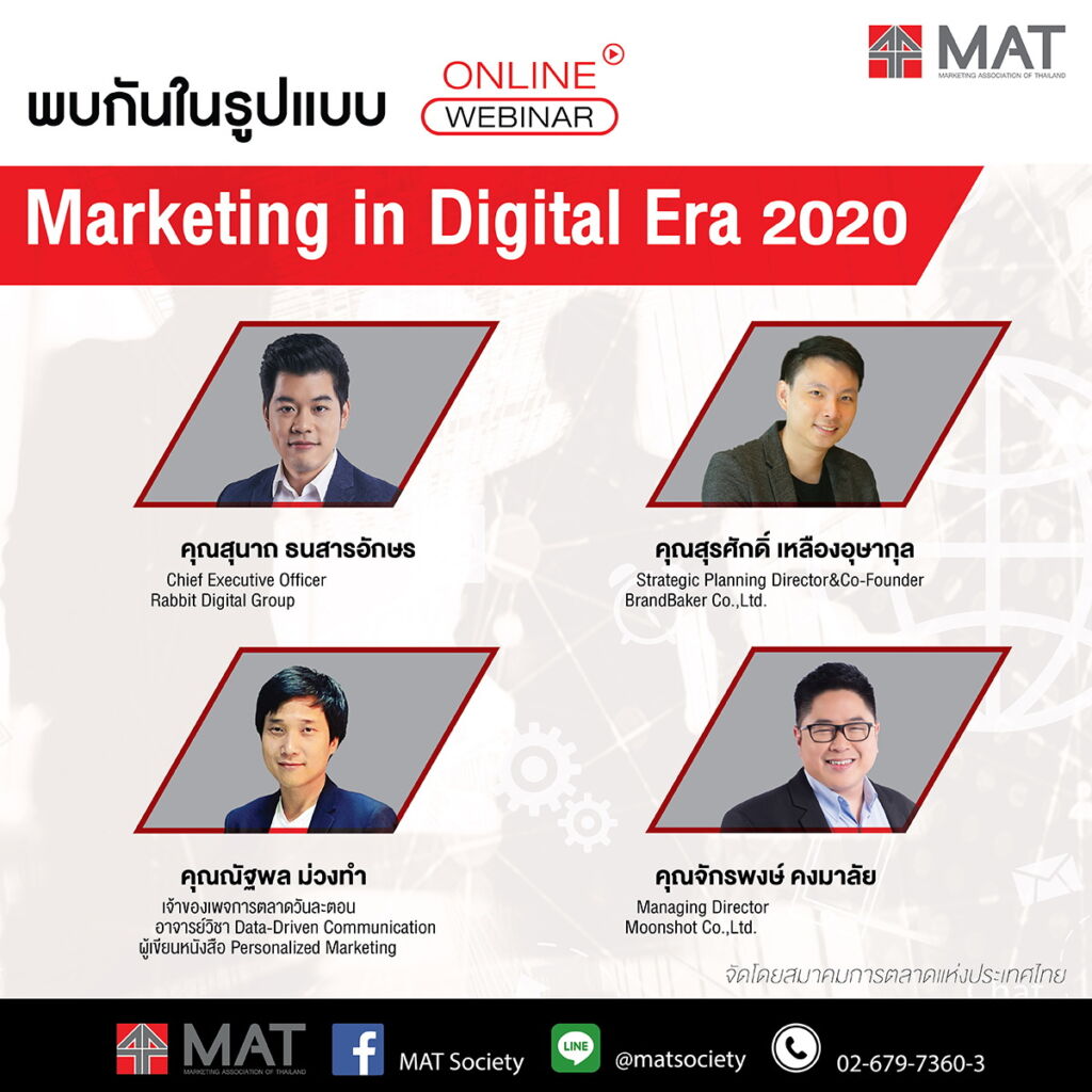 MAT เปิดหลักสูตร ด้านการตลาดดิจิทัล ที่จะมาเสริมความพร้อมให้ธุรกิจของคุณ กับหลักสูตร Marketing in Digital Era 2020   ในรูปแบบ “Online Webinar” ในยุคของดิจิทัล พฤติกรรมผู้บริโภคเปลี่ยนแปลงอย่างรวดเร็ว นักการตลาดจึงไม่ใช่แค่ตามทัน แต่ต้องก้าวนำอยู่เสมอ‼