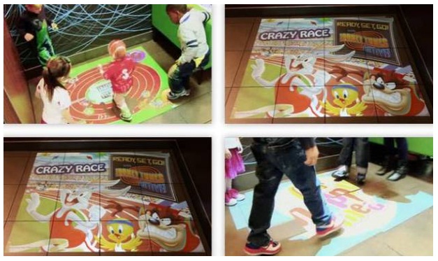 McDonald?s ได้นำเกมรูปแบบ Interactive Floor มาใช้คู่กับตัวการ์ตูนทั้งของ McDonald?s เองและตัวการ์ตูนที่เป็นที่รู้จักเป็นอย่างดี เช่น Bugs Bunny และ Tweety ตัวละครหลักของเกมนี้จะมีเนื้อหาเชื่อมโยงถึงโปรโมชั่นต่างๆของ Happy Meal ซึ่งจะทำให้เด็ก”อิน”กับตัวการ์ตูนของเล่นใน Happy Meal มากขึ้น