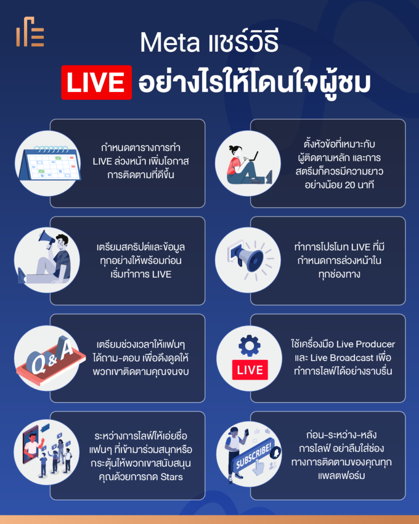 - กำหนดตารางการทำ LIVE ล่วงหน้า เพิ่มโอกาสการติดตามที่ดีขึ้น