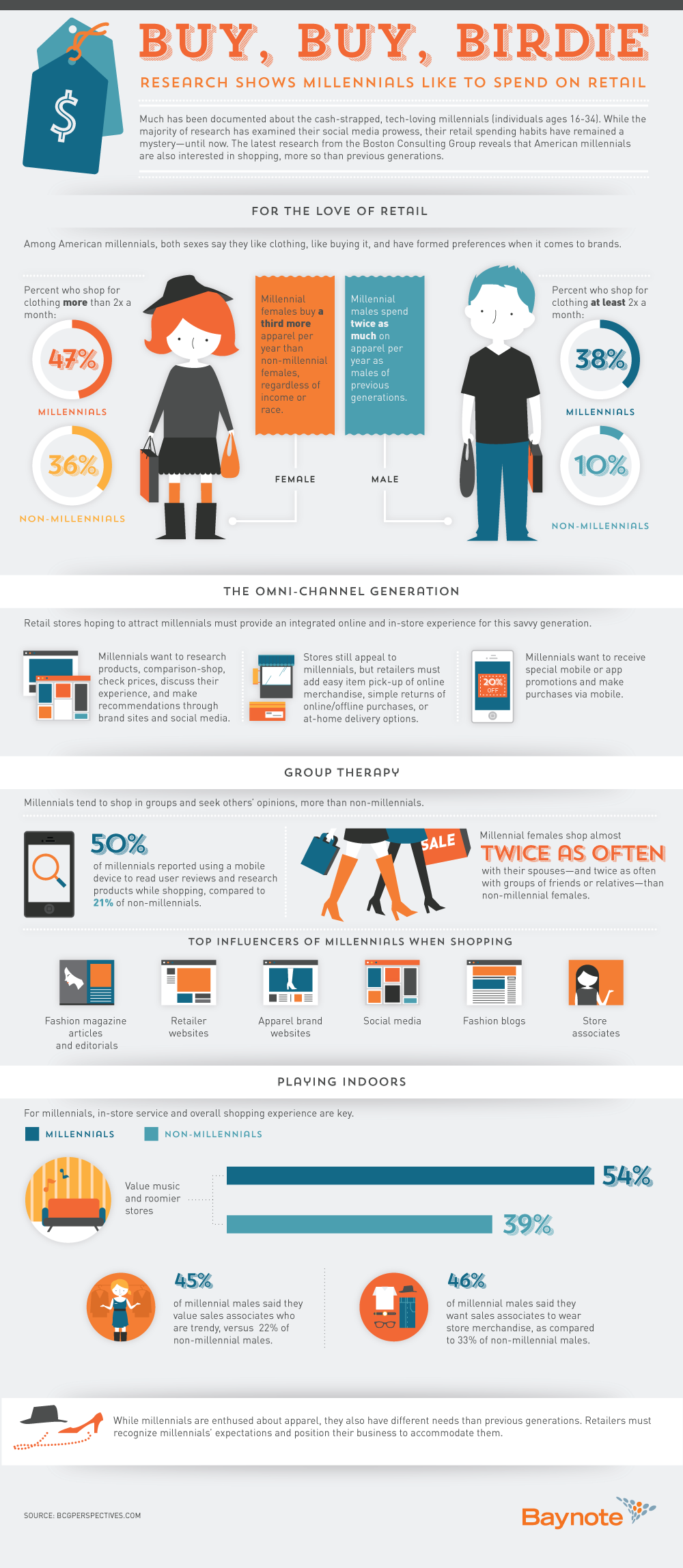 Boston Consulting Group ได้ทำการศึกษาเกี่ยวกับพฤติกรรมการบริโภคของกลุ่มผู้บริโภคที่มีอายุระหว่าง 16 – 34 ปี หรือที่นักการตลาดเรียกกันว่า Millenial และสรุปเป็น Infographic ที่อุดมไปด้วยสถิติน่าสนใจเกี่ยวกับพฤติกรรมการใช้จ่ายของ Millenial ในสหรัฐฯ ซึ่งทำให้เห็นว่าตลาดกลุ่มนี้มีความสำคัญและเป็นพลังในการขับเคลื่อนตลาดอย่างแท้จริง