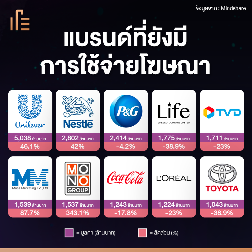 ทั้งนี้ อุตสาหกรรมที่ยังคงสานต่อในการโฆษณาและใช้สื่อต่อเนื่องและสร้างโอกาสทางการขายได้ดีขึ้นนั้น เห็นได้จากกลุ่มผลิตภัณฑ์เกี่ยวกับผม อุปกรณ์ทำความสะอาดบ้าน กลุ่มสินค้าเกี่ยวกับนมและกลุ่มสินค้าบำรุงสุขภาพ