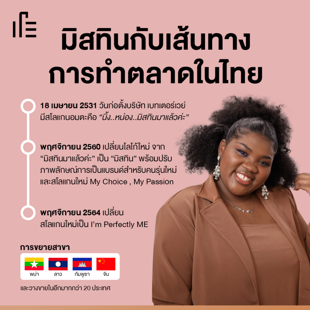 จากจุดนี้เองก็เป็นสิ่งที่ มิสทิน พยายามจะผลักดันให้ทุกคนมั่นใจในความสวยตามช่วงอายุ ความต้องการในแบบที่ตนเองนิยม เพราะแต่ละคนต่างก็สวยในแบบที่แตกต่างกัน ตามแบรนด์คอนเซ็ปต์ที่ต้องการจะส่งต่อผู้หญิงยุคใหม่ทุกคนที่ชื่อว่า “I’M PERFECTLY ME”