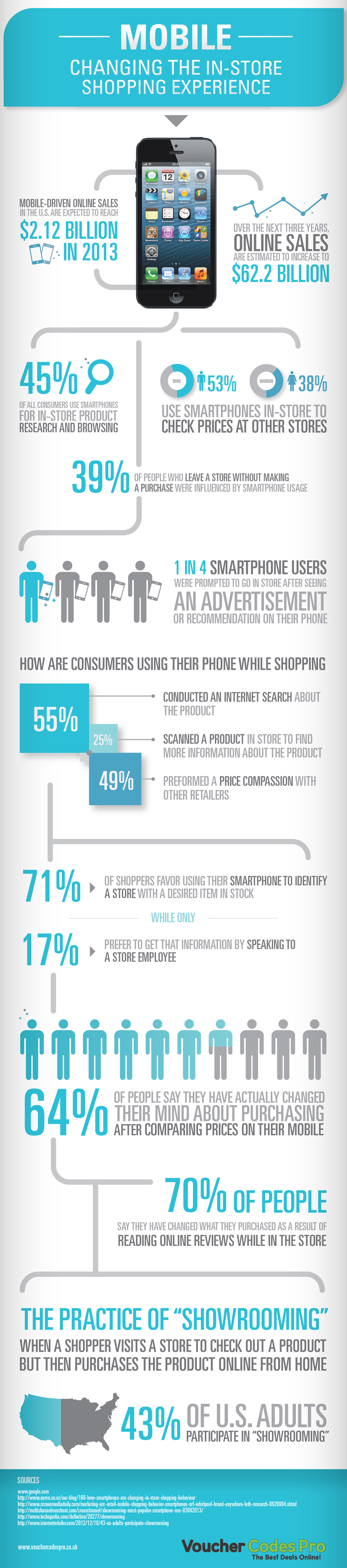 ไม่เพียงแต่ตลาดออนไลน์ สมาร์ทโฟนยังมีบทบาทสำคัญต่อตลาดออฟไลน์ด้วย โดยผลการสำรวจของเว็บไซต์ Vouchercodespro.com ระบุว่า ปัจจุบันผู้บริโภคกว่า 45% ทั้งเพศชายและหญิงเริ่มหันมาพึ่งพาสมาร์ทโฟนเพื่อเป็นตัวช่วยในการตัดสินใจขณะซื้อสินค้าในร้านค้าเพิ่มมากขึ้น