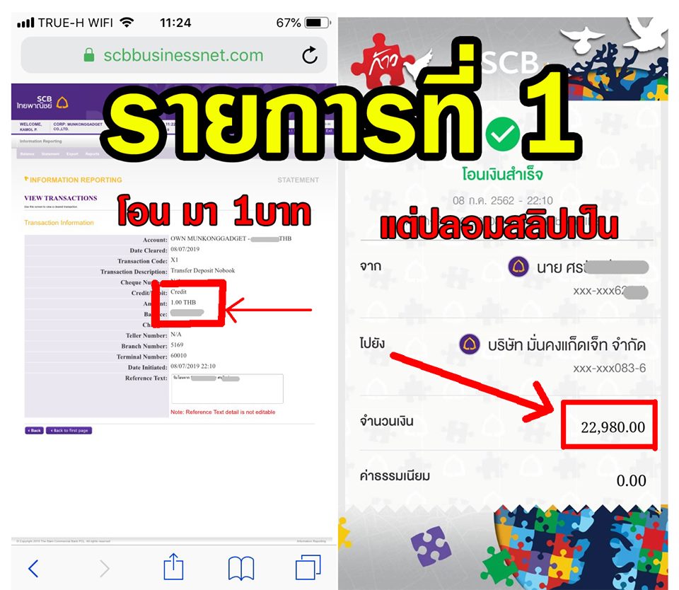 แม้จะเป็นร้านขาย Gadget รายใหญ่อย่าง “มั่นคงแก็ดเจ็ท” หรือ Munkonggadget ก็ยังไม่รอดมือมิจฉาชีพ ที่ส่งสลิปโอนเงิน 1 บาท มาให้กับระบบสั่งสินค้าออนไลน์ของทางบริษัท โดยยอดราคาสินค้าจริงอยู่ที่ 17,900 บาท งานนี้เฮียเจ้าของร้านถึงกับต้องโพสต์ผ่านเฟสบุคของทางร้าน เพื่อแจ้งเตือนให้พ่อค้าแม่ค้าออนไลน์ระวังกัน และมียอดแชร์บนเฟสบุคไปแล้วกว่า 691 ครั้ง (อ่านที่มา)