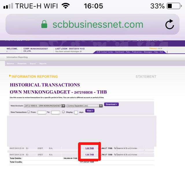 จากนั้นก็รอทางฝ่ายขนส่งมารับของ ขณะนั้นทีมงานที่ดูแลฝ่ายออนไลน์เห็นยอดเงินแจ้งเข้ามาเพียง 1 บาท จำนวน 2 รายการ จึงแจ้งให้กับทางทีมขนส่งเพื่อระงับการจัดส่งดังกล่าว