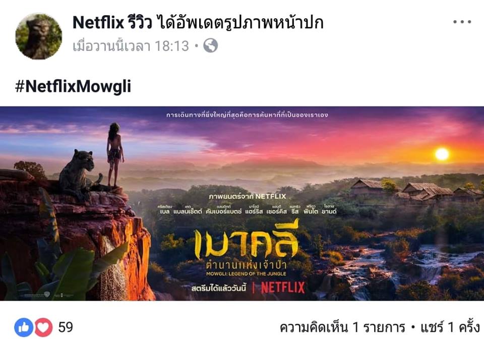 Mowgli หรือเมาคลี ตำนานแห่งเจ้าป่าเป็นภาพยนตร์ฟอร์มยักษ์ที่ Netflix ตั้งใจทำตลาดเอเชียช่วงปลายปี ความน่าสนใจคือ Netflix ไม่ได้ “สนับสนุนโพสต์” หรือซื้อโฆษณาทั่วไปเท่านั้น เพราะ Netflix ใช้วิธีทำให้เพจภาพยนตร์บน Facebook หลายแห่งพร้อมใจกันเปลี่ยนภาพโปรไฟล์และภาพปกเพื่อโปรโมท Mowgli ถือเป็นกลยุทธ์การโฆษณาบนโซเชียลไทยที่ควรค่าแก่การเปิดประเด็นในช่วงเวลานี้