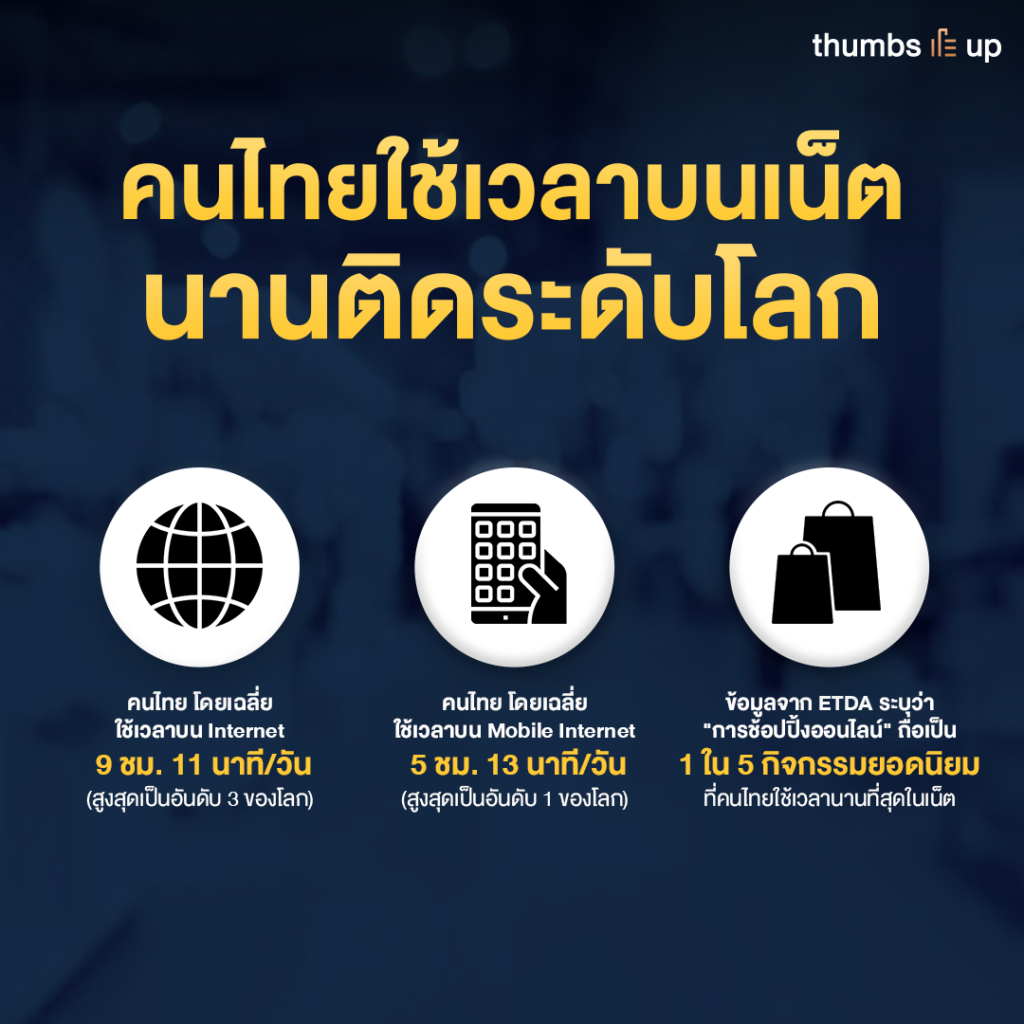 ประกอบกับข้อมูลจาก ETDA ระบุว่า “การช้อปปิ้งออนไลน์” ถือเป็น 1 ใน 5 กิจกรรมในเน็ตยอดนิยมที่คนไทยใช้เวลานานที่สุด สะท้อนให้เห็นว่า E-Commerce กลายเป็นพฤติกรรมหลักของผู้บริโภคยุคนี้ที่ภาคธุรกิจมองข้ามไม่ได้อีกต่อไป