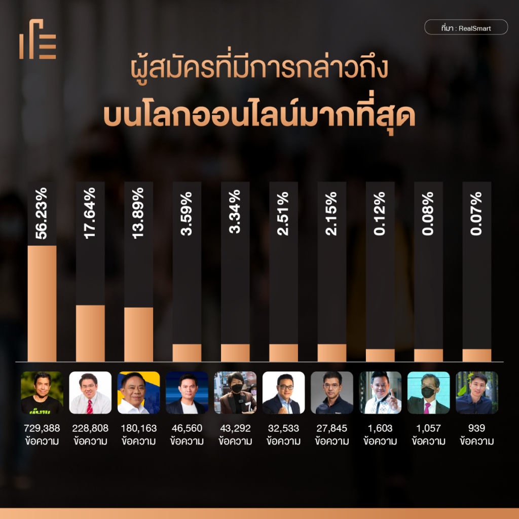 ผู้สมัครที่มีการกล่าวถึงบนโลกออนไลน์มากที่สุด
