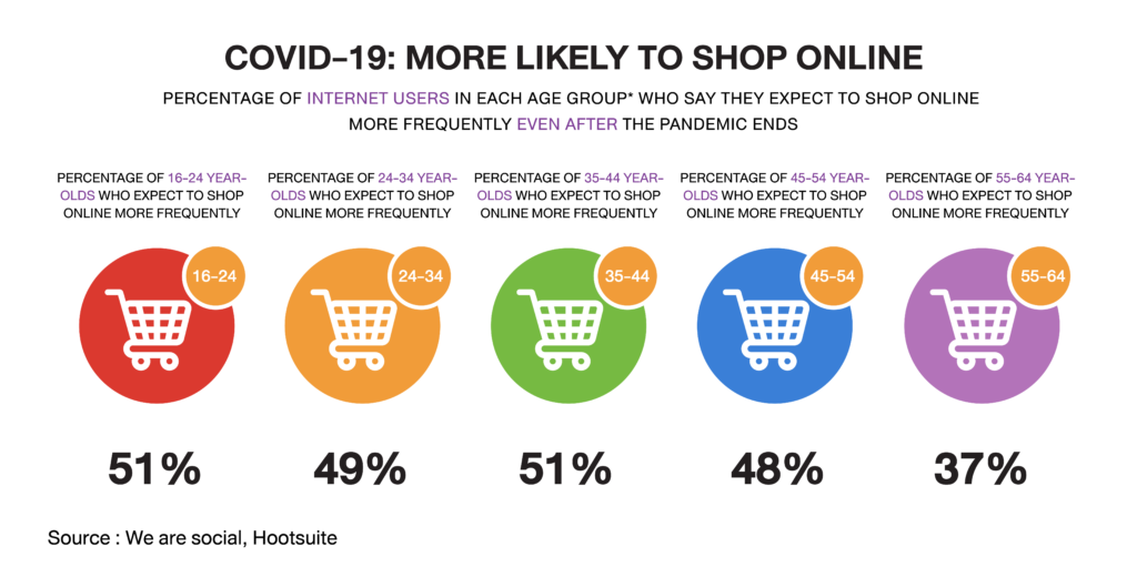 สิ่งที่สำคัญคือเมื่อมนุษย์เราได้ใช้เทคโนโลยีที่ทำให้เราสะดวกสบายมากขึ้น หรือตอบสนองความขี้เกียจเราแล้วนั้น ก็จะทำให้พฤติกรรมในการทำงานหรือใช้ชีวิตนั้นถูกเปลี่ยนไปโดยสิ้นเชิง โดยผลสำรวจผู้ที่อายุระหว่าง 16-54 ปี กว่าครึ่งนึงตอบว่ามีโอกาสที่จะซื้อของออนไลน์บ่อยขึ้น