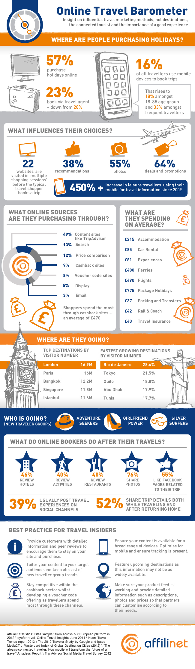 ผลการสำรวจพบว่านักท่องเที่ยวยุโรปจำนวนกว่าครึ่ง (52%) ที่ซื้อสินค้าและบริการด้านการท่องเที่ยวผ่านทางออนไลน์ จะนิยมนำเรื่องราวและประสบการณ์ที่ได้รับจากการเดินทางมาแชร์ผ่านช่องทางต่างๆ โดยเฉพาะโซเชียลมีเดียสูงถึง 39% โดยส่วนใหญ่เป็นการแชร์ภาพถ่ายมากที่สุด 76% รวมไปถึงการรีวิวเกี่ยวกับที่พัก ร้านอาหารและการทำกิจกรรมต่างๆ