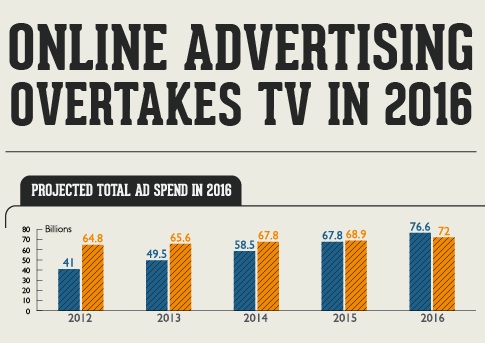 เว็บไซต์ Infosys.com ประเมินว่าในปี 2016 หรืออีก 3 ปีข้างหน้า มูลค่าการลงทุนด้านโฆษณาออนไลน์จะเพิ่มขึ้นอย่างต่อเนื่องจนมีมูลค่าแซงหน้าการทำโฆษณาทีวี โดยโฆษณาออนไลน์จะมีมูลค่าการลงทุนราว 76,600 ล้านเหรียญสหรัฐ ในขณะที่การทำโฆษณาทางทีวีมีมูลค่าตามหลังอยู่ที่ 72,000 ล้านเหรียยญสหรัฐ