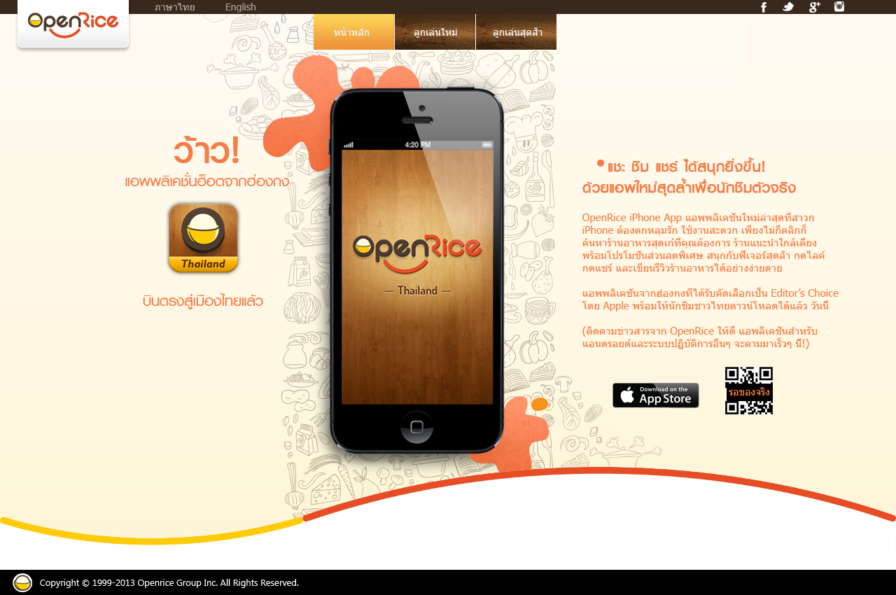 โอเพินไรซ์ ได้คิดค้นและพัฒนาแอพฯ เพื่อก้าวไปสู่การเป็นผู้นำแอพพลิเคชั่น สำหรับค้นหาร้านอาหารอันดับ 1 ในเอเชีย จนได้แอพฯ ที่มีดีไซน์เมนูทุกรูปแบบใหม่ที่ใช้งานง่ายยิ่งขึ้น สามารถหาร้านอาหารได้เพียงปลายนิ้ว แสดงรูปภาพอาหารขนาดใหญ่ สวยงาม พร้อมฟังก์ชั่นการเขียนรีวิวที่สะดวกครบครัน OpenRice iPhone App จึงเป็นแอพพลิเคชั่นค้นหาร้านอาหารและรีวิวร้านอาหารที่ดีที่สุดตามคอนเซ็ปต์ “เพื่อนค้นหา…เวลาหิว”