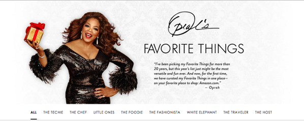 ที่ผ่านมา Favorite Things เป็นรายชื่อสินค้าที่ชาวอเมริกันหลายคนยึดเป็นแนวทางในการซื้อของขวัญให้คนรอบตัวช่วงเทศกาลหยุดยาวปลายปี สำหรับปีนี้ แทนที่จะเปิดตัวบนนิตยสาร O Magazine อย่างที่เคยทำมาตลอดนับตั้งแต่ Oprah ยุติการจัดรายการทีวีไปเมื่อปี 2011 รายการ Favorite Things กลับถูกเปิดตัวบนหน้าแรกของเว็บไซต์ Amazon.com ซึ่งเป็นการเปิดตัวก่อนที่นิตยสาร O ฉบับเดือนธันวาคมจะวางจำหน่ายในสัปดาห์หน้า