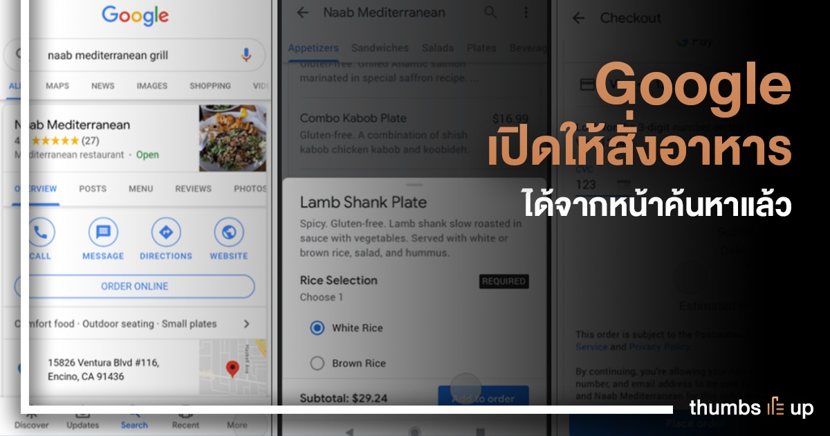 โดยฟีเจอร์ดังกล่าวจะอำนวยความสะดวกให้ผู้ใช้งานสามารถสั่งอาหารได้โดยไม่ต้องออกจากหน้าบริการของ Google ได้เพียงแค่กดปุ่ม “Order Now”