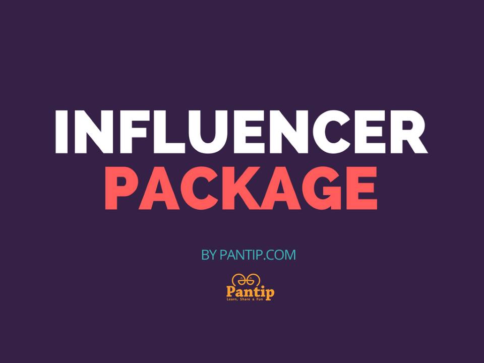 Influencer Package ถูกการันตีว่าเป็นบริการที่ Pantip.com จะช่วยหาสมาชิกและบล็อกเกอร์เพื่อรับงานรีวิวให้กับแบรนด์ โดยนำเสนอในรูปแบบกระทู้ ซึ่งจะระบุชัดเจนว่ากระทู้นี้เป็น Branded Content ที่ได้รับการสนับสนุน และมีตำแหน่ง Boost เป็นพิเศษ