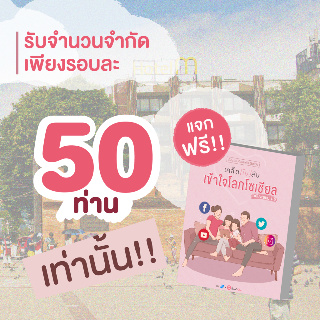 พิเศษสุดๆ หากเข้าร่วมกิจกรรมทุกคนจะได้รับหนังสือคู่มือ “เคล็ด(ไม่)ลับ เข้าใจโลกโซเชียลฉบับพ่อแม่ 4.0” ไปแบบฟรีๆ หากบ้านไหนกำลังประสบปัญหาเจ้าตัวเล็กติดโซเชียลบนโลกออนไลน์  ห้ามพลาดงานนี้เด็ดขาด!!