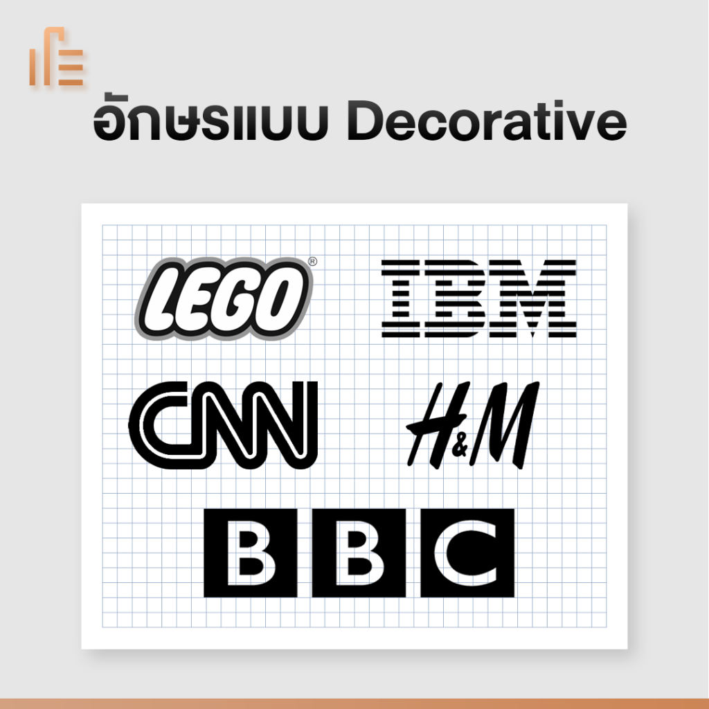 สุดท้ายคือฟอนต์แบบ Decorative เป็นรูปแบบตัวอักษะที่สร้างสรรค์ได้มากที่สุด ช่วยให้แบรนด์สามารถเสริมสร้างเอกลักษณ์และจุดเด่นได้อย่างเต็มที่