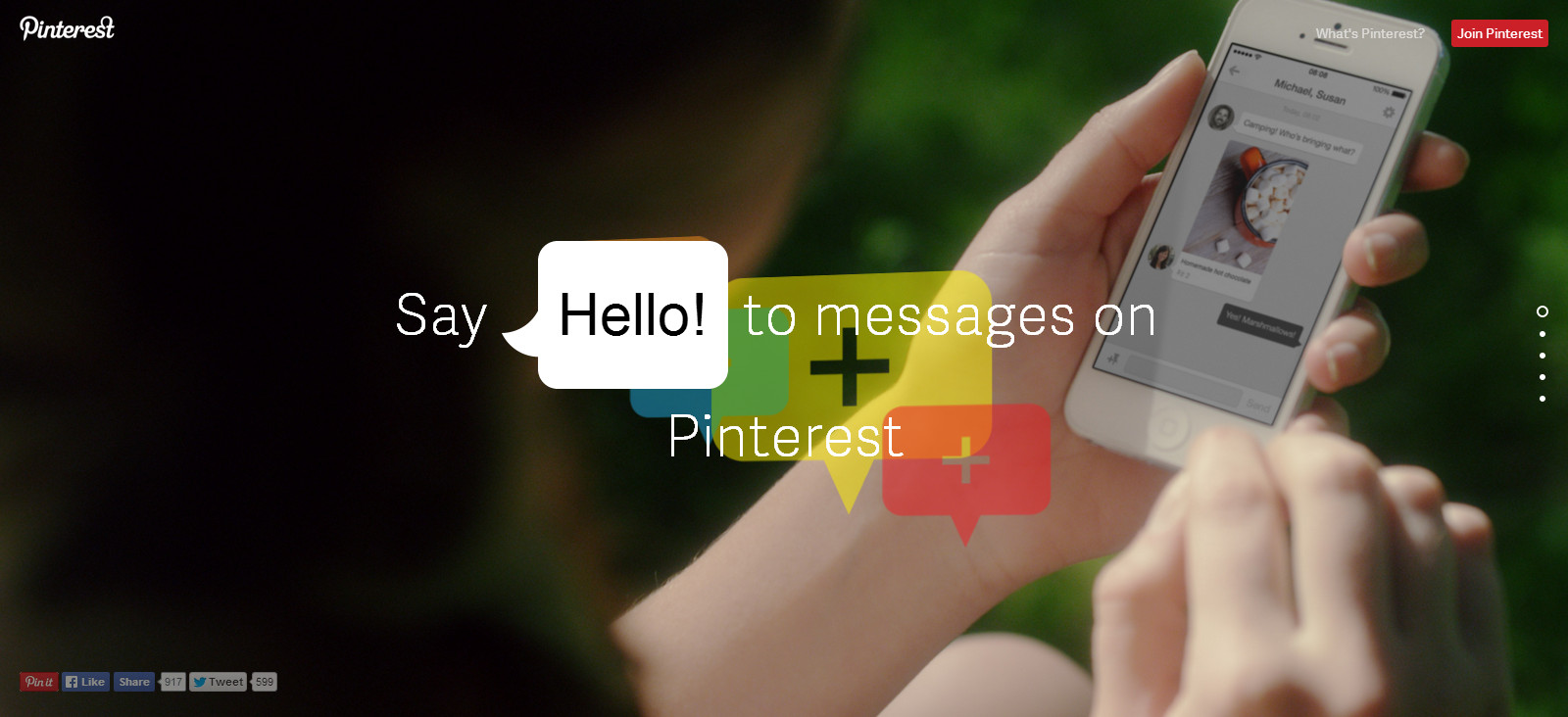 หลายคนมักจะเจอและแก้ปัญหาว่า เราไปเจอไอเดียเจ๋งๆ บน Pinterest แต่เราจะต้อง copy รูป print หรือส่งเมลเพื่อให้เพื่อนดู หรือเราอยากจะพูดคุยถึงรายละเอียดเกี่ยวกับแนวความคิดว่าเขาคิดได้อย่างไรกับเจ้าของผลงาน ตอนนี้ Pinterest แก้ไขปัญหานี้แล้วด้วยการเพิ่มคุณสมบัติที่เราจะสามารถพูดคุยกับเพื่อนๆ ได้หลายๆ คน รวมทั้งสามารถคุยกับเจ้าของภาพที่ปักหมุดได้โดยตรงอีกด้วย